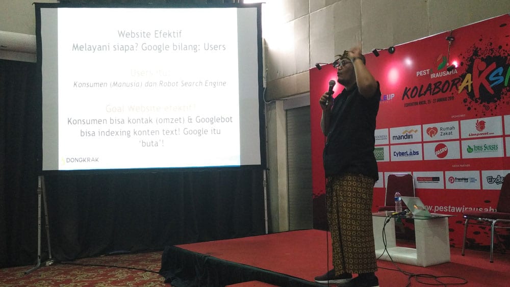 Topik dan tema wirausaha mengemuka di acara seminar dan workshop. Beragam pembicara silih berganti berbagi ilmu dan pengalamannya. Termasuk CEO BOC Indonesia, Hendra W Saputro mendapatkan kesempatan berbicara tentang internet marketing khususnya website dan SEO.