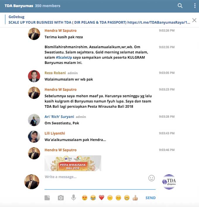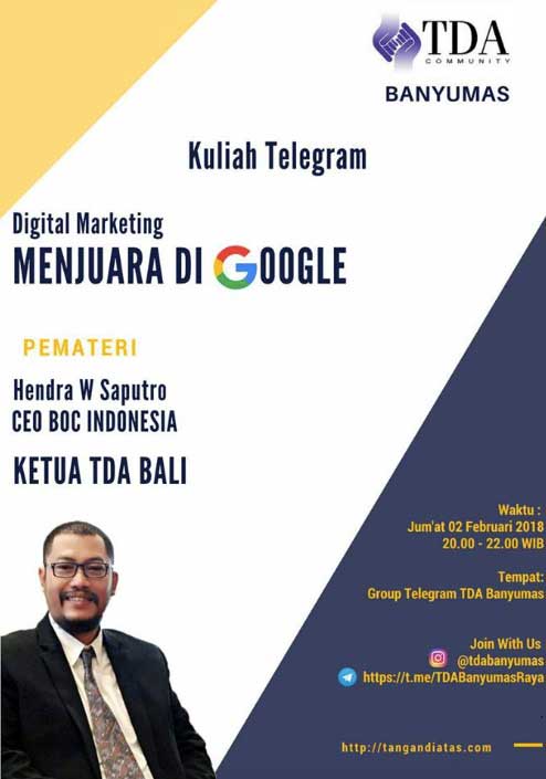 BOC sendiri sebagai perusahaan hosting Indonesia mengucapkan terima kasih karena Tuhan YME dan para anggota TDA memberikan kesempatan Hendra untuk menerapkan misi perusahaan juga. Semoga hal ini menjadi kontribusi positif dan menebarkan manfaat bagi anggota TDA.