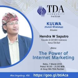 Terdapat satu program dari TDA di seluruh Indonesia bernama KULWA atau KULGRAM yaitu singkatan dari Kuliah WhatsAppa dan Kuliah Telegram. Berbentuk memberikan materi teknis dan taktis beragam ilmu kewirausahaan kepada anggota TDA.