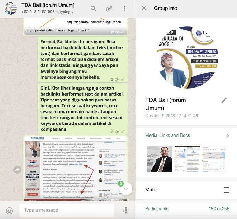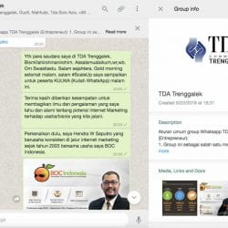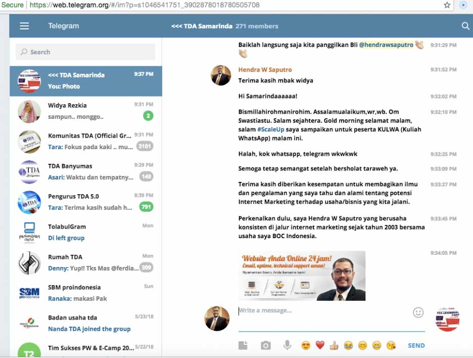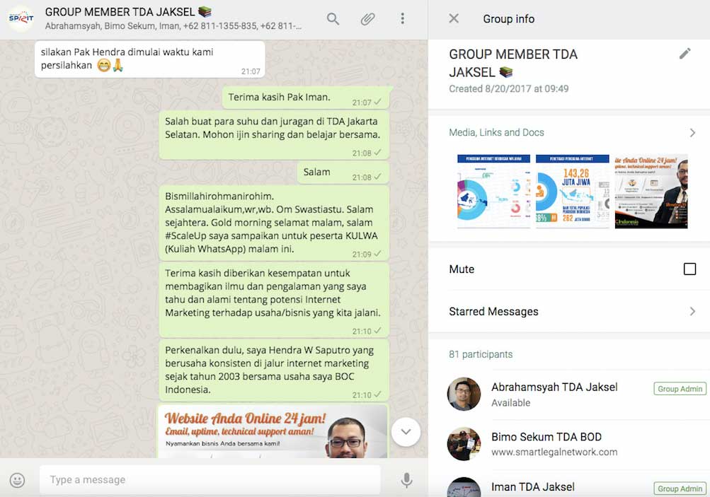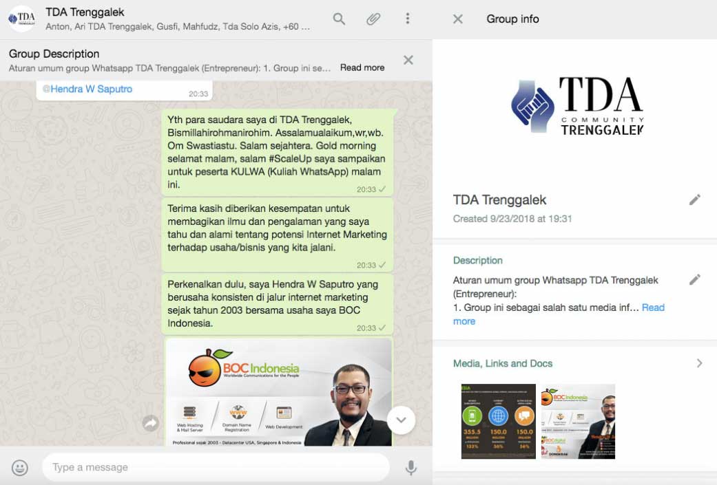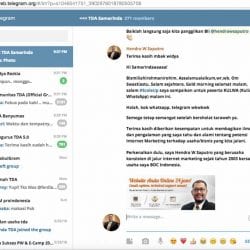 Hendra pun memberikan materi KULWA/KULGRAM melalui laptop nya yang terkoneksi ke internet menggunakan aplikasi WhatsApp dan Telegram for web via browser.